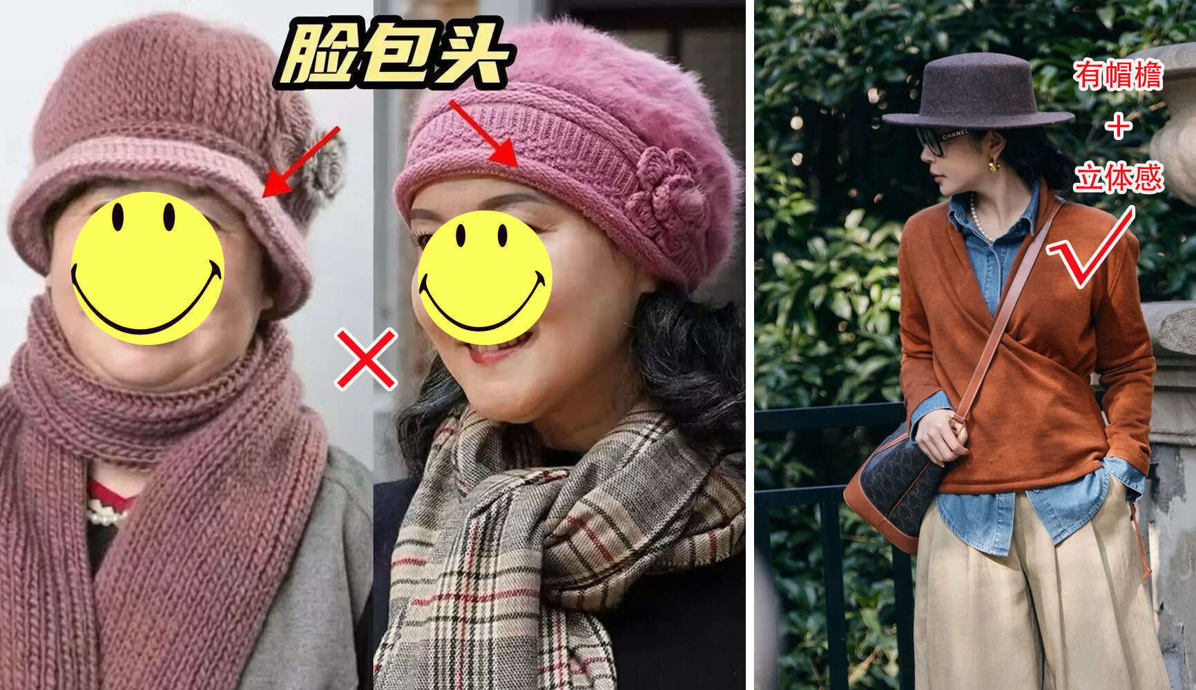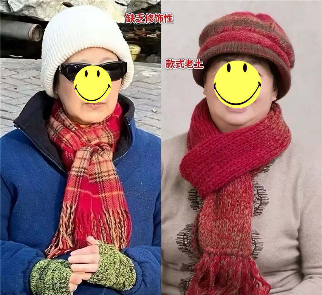 帽子作为实用又能遮挡衰老痕迹的时尚配饰,可是到了上了年纪的女人这里,好像画风直接变了,高级精致瞬间消失不见,剩下的只有↓图中的老气与寒酸。